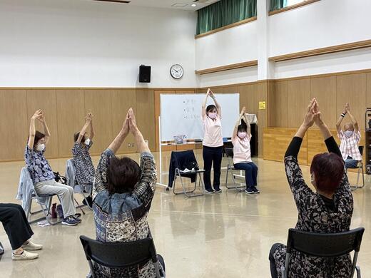 今回は、「訪問看護ステーションもも」の高安さんと片岡さんと一緒に、おうちでもできるストレッチなどをやってみました。